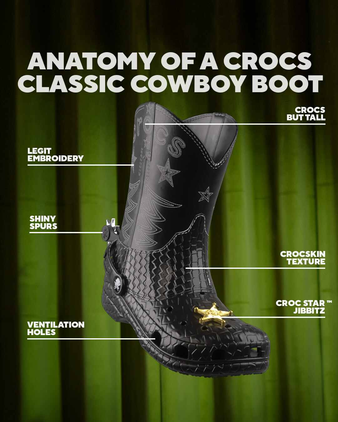 Saddle up cowpokes! Life on the ranch is about to get more stylish as Crocs has just ridden in with a pair of its very own Classic Cowboy Boots to mark the beginning of Croctober.