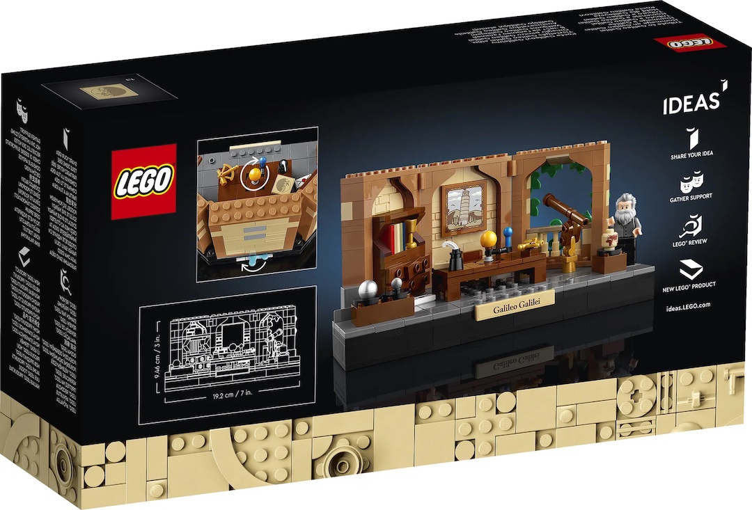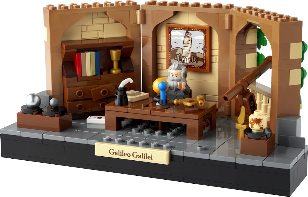 The model rests on a sleek black base adorned with a nameplate titled “Galileo Galilei.” This set also continues LEGO’s Tribute series, following in the footsteps of previous sets that honored remarkable figures like Jane Goodall and Amelia Earhart.