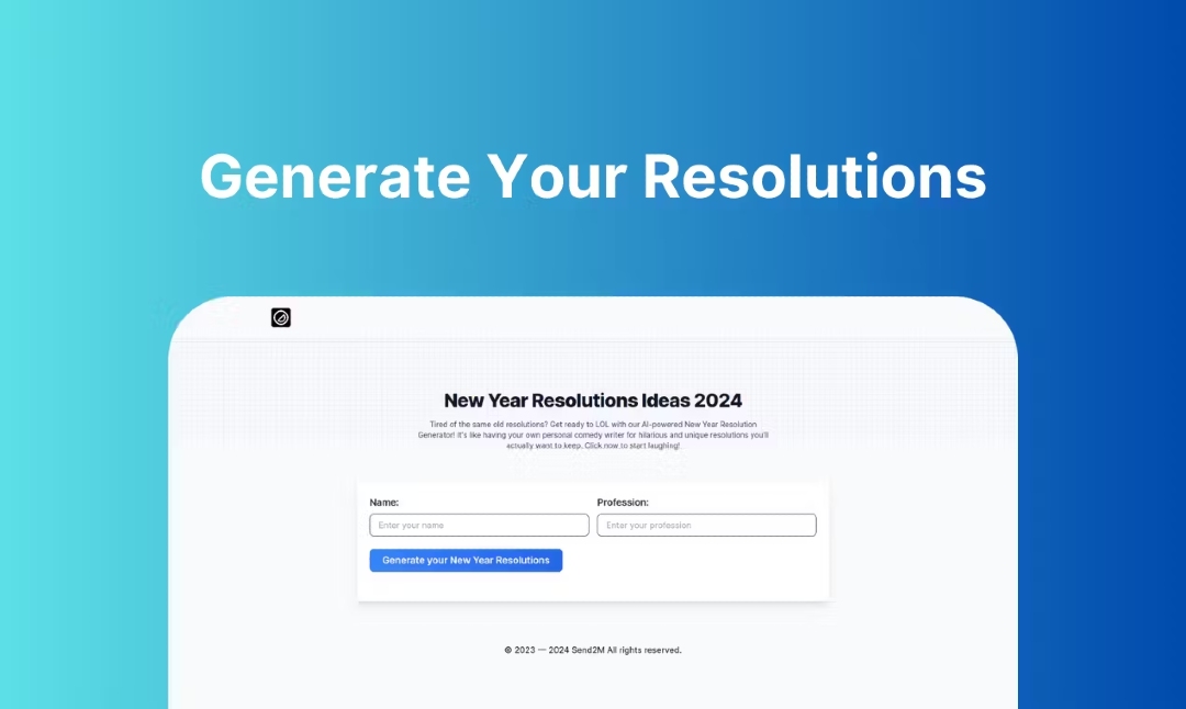 As the year wraps up, instead of the usual vows to hit the gym or travel more, why not add a dash of humor to your New Year goals? Enter the New Year Resolutions AI generator, a quirky twist to the annual tradition, promising to sprinkle laughter and light-heartedness into your 2024 goals.