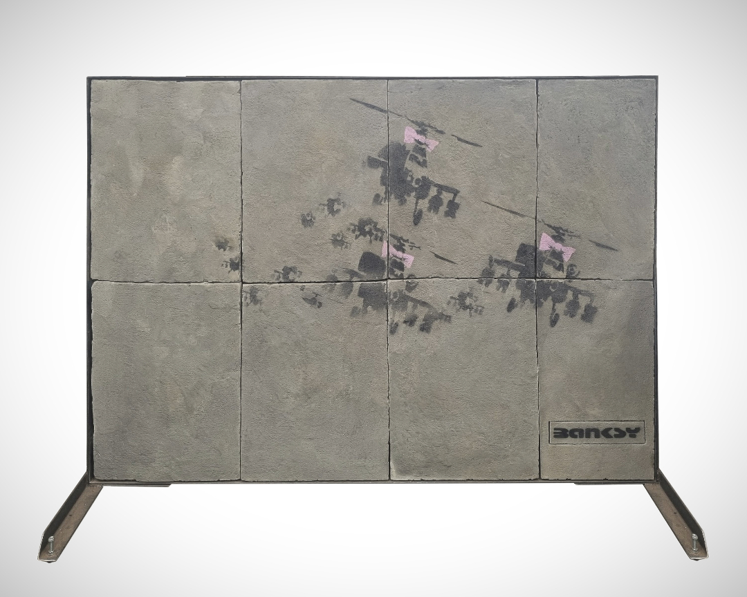 A hidden Banksy artwork has been unearthed in plain sight, and now it’s ready to take flight at auction. Happy Choppers, a 2002 piece featuring the anonymous artist’s signature helicopter motif, is set to be a star attraction at the Spring Fine Art Auction held by Anderson & Garland in Newcastle, England.