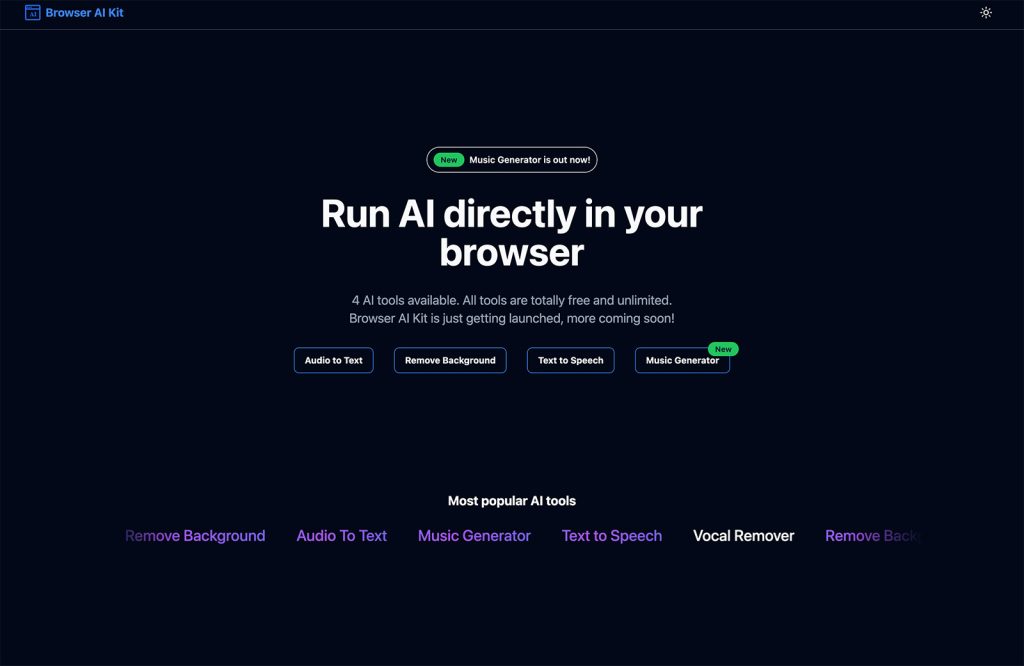 This web app lets you run some of the most popular AI tasks directly in your browser. There are currently three tools available, with potentially more coming.
