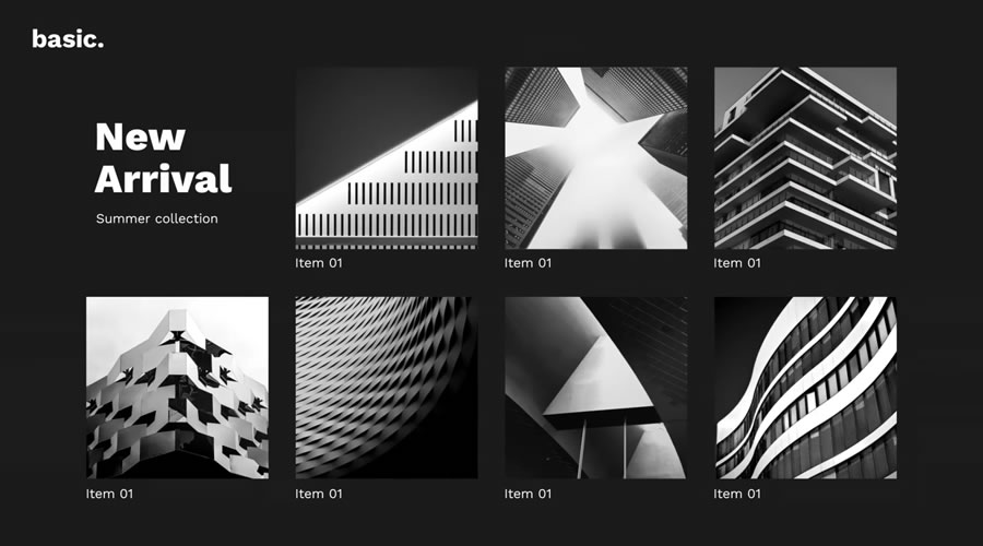 Here’s a minimalistic template with a clean layout and beautiful typography. The formatting is attractive and prioritizes legibility. This template proves that you don’t need to go over the top with movement to be effective.