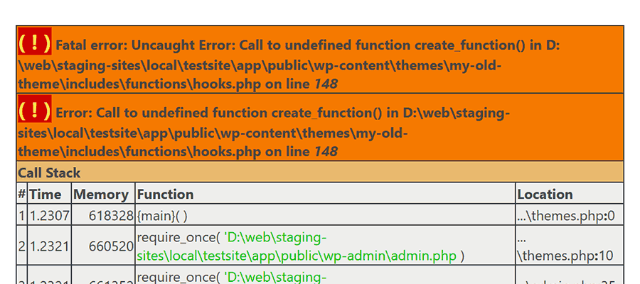 The following PHP snippet produces an error in PHP 8.2: "Fatal error: Uncaught Error: Call to undefined function create_function()"