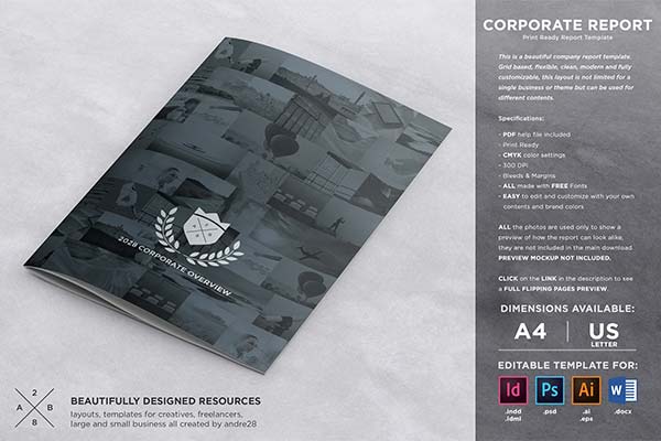 The business and corporate report templates in this collection are the perfect solution. They’re predesigned and built for customization and work with popular Adobe apps, including InDesign and Photoshop.